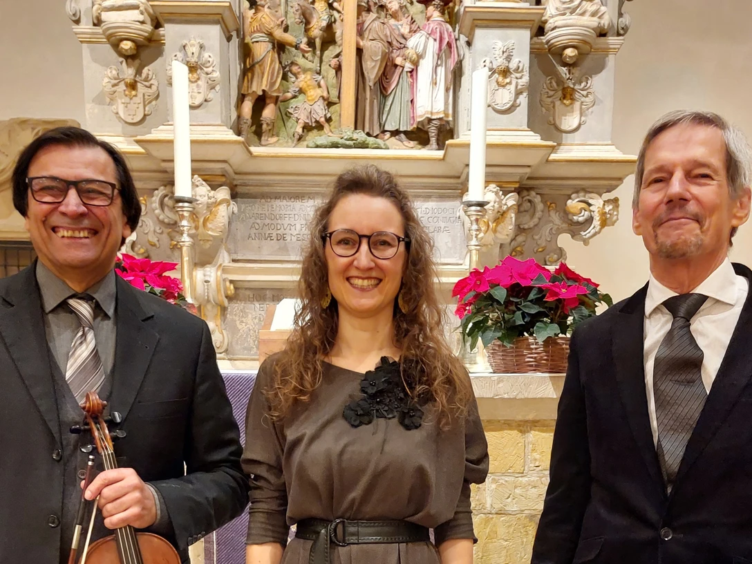 Im Zentrum des gemütvollen Programms von Serhii Arzumanov, Violine, Lara Venghaus, Sopran, und Michael Hoyer, Klavier, steht die Figur der Maria, deren Empfang der Verkündigung durch den Erzengel den Beginn der Weihnachtsgeschichte markiert. Das berühmte "Ave Maria“ von Charles Gounod auf der Basis einer Klavierkomposition von Johann Sebastian Bach gehört ebenso zum Programm wie die Vertonungen der Gedichte von Novalis durch Franz Schubert und Louise Reichardt. Als Gäste werden die Sopranistin Hannah Klimeck und der Bariton Hanno Lechtermann, beide Schüler von Lara Venghaus und Michael Hoyer, das titelgebende "Benedictus“ aus dem "Oratorio de Noël“ von Camille Saint-Saëns im Duett darbieten. Werke von Cesar Franck, Max Reger und Adolphe Adam runden das Programm ab.