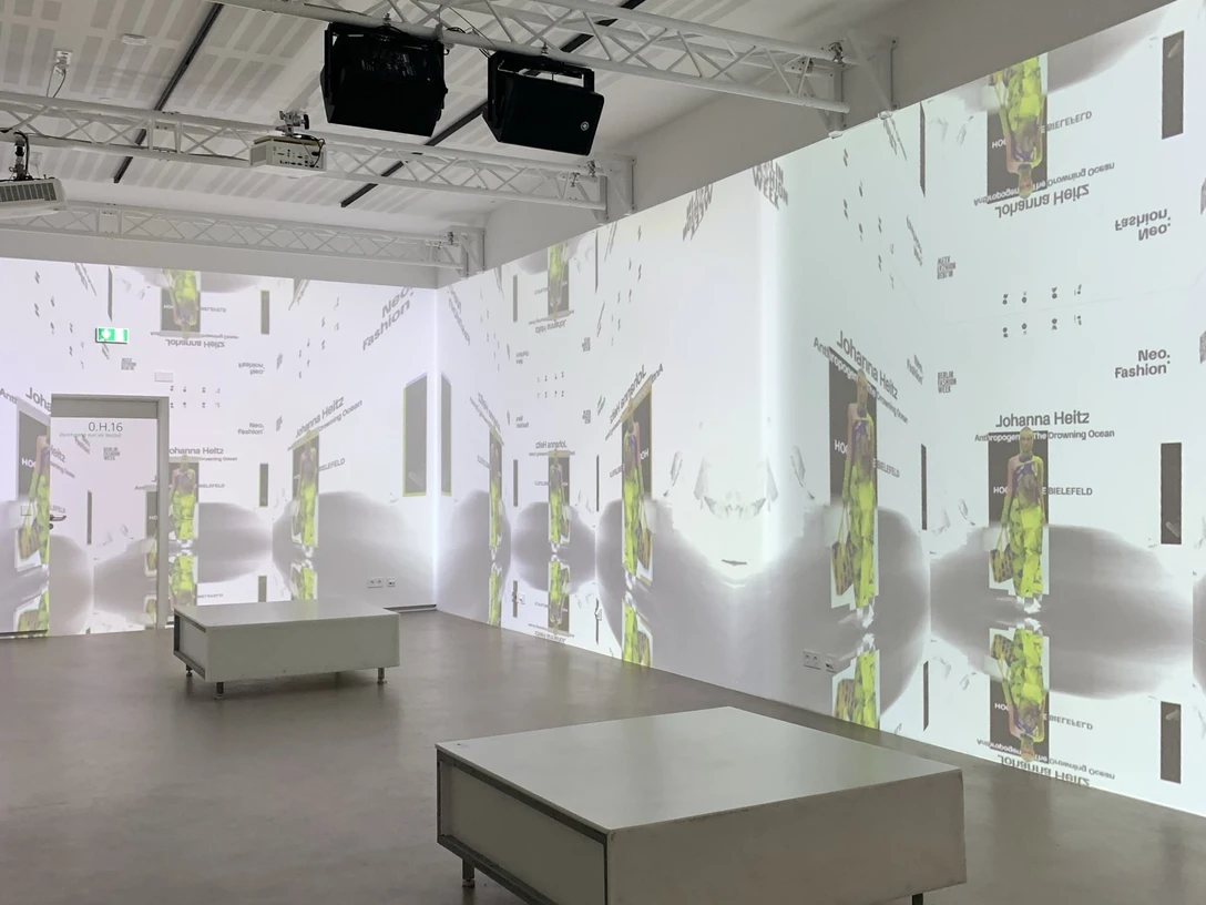 Die Installation besteht aus Videosequenzen von Runway-Präsentationen am Fachbereich Gestaltung der HSBI. Aus Gesten, Schritten und Silhouetten entsteht ein visuelles Archiv – ein Gedächtnis der Bewegungen, die sonst nur für einen Moment existieren.