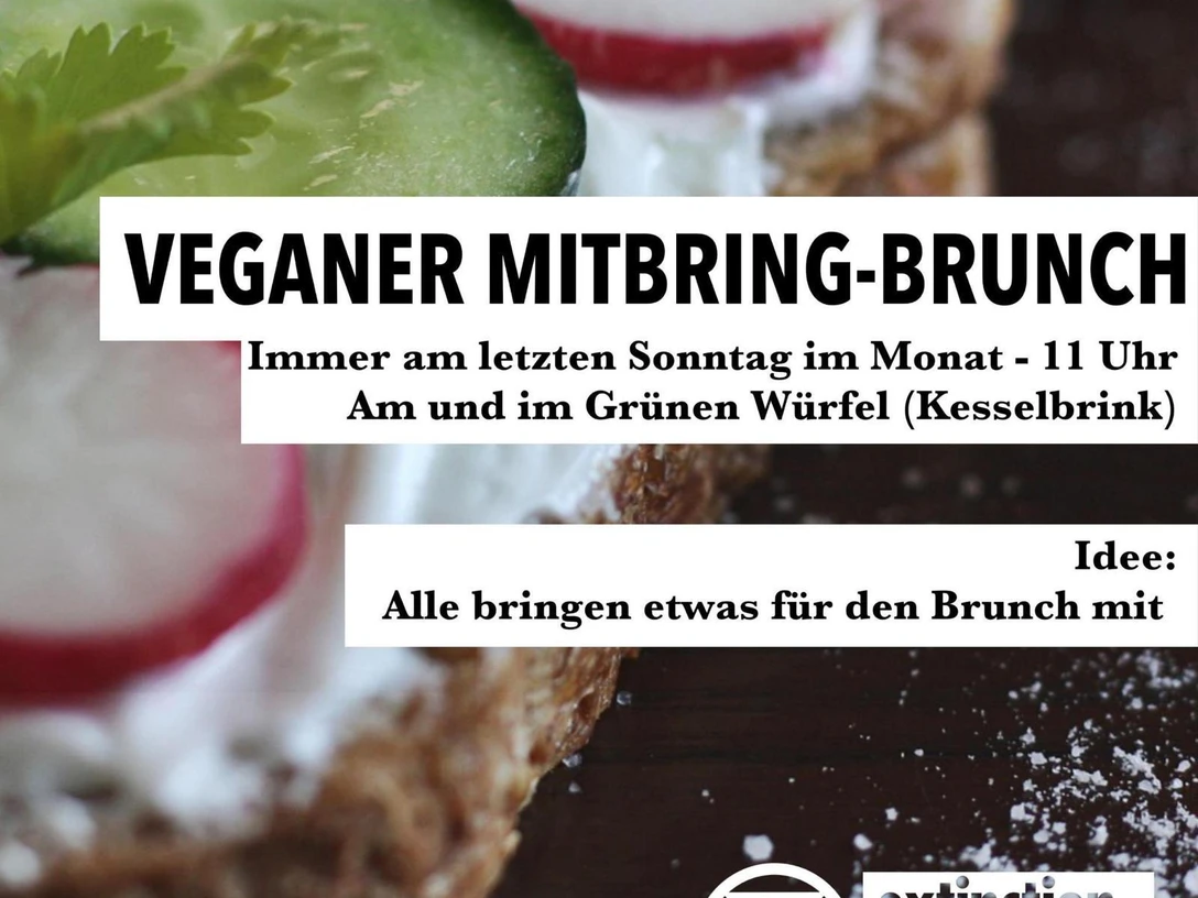 Jeden letzten Sonntag im Monat ab 11 Uhr veranstalten wir mit großer Freude den veganen Mitbring-Brunch im Grünen Würfel. Dieser ist für alle offen. Unser Ziel ist es, Menschen verschiedener Gruppen aus dem Bereich Umwelt- und Klimaschutz zusammenzubringen, um sich bei einem gemütlichen Brunch auszutauschen oder einfach die veganen Mitbringsel zu genießen.