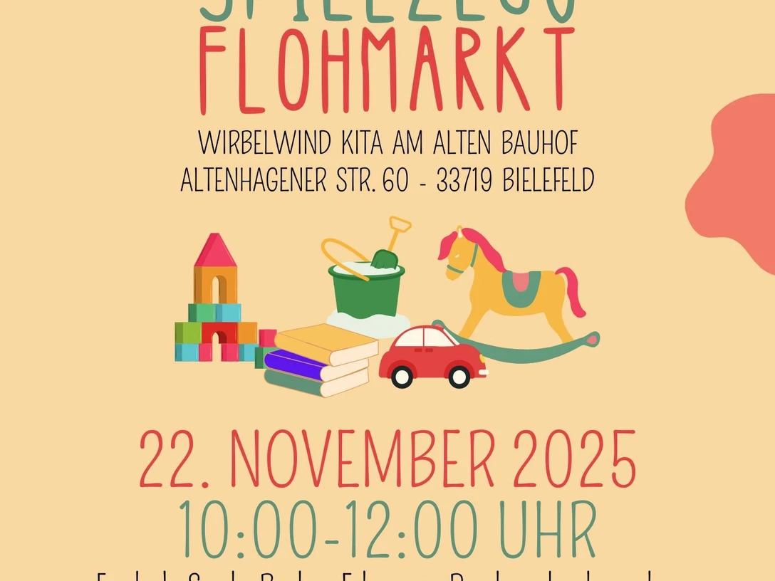 Am 22. November 2025 von 10–12 Uhr lädt das Elternbeirat der Wirbelwind Kita am Alten Bauhof (Bielefeld Heepen) zum vorsortierten Spielzeug-Flohmarkt ein.